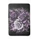 This illustration shows three beautiful roses, one white and two purple, surrounded by elegant black and purple decorations. Dark tones and complex details create a mysterious and gothic atmosphere, while lighter parts add contrast and extra depth.