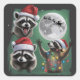 Three Raccoons With The Moon Galaxy Christmas Square Sticker