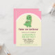 Picture this: A sleek vibrant pink cover that not only captures attention but sets the stage for a cool and dinomite third birthday bash. In the centre, a cute girly green dinosaur steals the show, accompanied by the text "Three Rex Birthday" against a delightful pink and yellow background. It's not just an invitation; it's a gateway to a world of dino fun and excitement! 🌈👧🎈