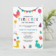 Cute and colourful whimsical dinosaur birthday party invitation. Get the party started with invitations that are as adorable as they are ferocious! Our cute dino characters bring the prehistoric magic to life, promising a roaring good time for all your little party-goers. Original artwork by Kristine Lee www.kristineleedesigns.com