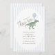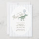 Stomp on over for a dino good time with this “Three Rex” birthday invitation featuring a watercolor green T-rex with a balloon and soft blue striped background. Perfect for boys who love dinosaurs. Personalize all text for an unforgettable prehistoric birthday celebration.