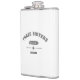 The flask itself is fine. It’s a cheap flask, obviously bought in bulk, however am prepared to overlook that. Given that it is a personalized item, I would have liked to have seen gift boxing instead of the generic packaging. Terrible printing, and/or quality. It’s a cheap, tacky vinyl. It is not cut straight and is also applied in a way that it is overhanging the bottom, causing the glue to catch on items and it will eventually roll and tear, damaging the wrap.