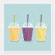 Three smoothies in cups looking very colourful and ready to drink. This design looks really effective on these Stickers