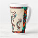 This is a Unique "One of a Kind" Three Southwest Kokopelli Latte Mug! It Features Three Kokopelli Playing the Flute and Dancing Under the Sun on a Sandstone Background...Surrounded by a Southwest Border in Turquoise, Orange & Black!