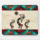 This is a Unique "One of a Kind" Southwest Kokopelli Mouse Pad! It Features a Three Kokopelli Playing the Flute and Dancing Under the Sun on a Tan Sandstone Background...Surrounded by a Southwest Border in Turquoise, Orange and Black!