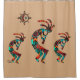 Decorate Your Bathroom with this Unique "One of a Kind" Southwest Kokopelli Shower Curtain! It Features Three Southwest Kokopelli in Turquoise, Orange and Black Dancing and Playing the Flute Under the Sun on Tan Background!
