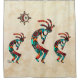 Decorate Your Bathroom with this Unique "One of a Kind" Southwest Kokopelli Shower Curtain! It Features Three Southwest Kokopelli in Turquoise, Orange and Black Dancing and Playing the Flute Under the Sun on Tan Sandstone Background!