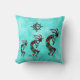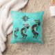 This is a Unique "One of a Kind" Southwest Kokopelli Throw Pillow! It Features Three Southwest Kokopelli Dancing and Playing the Flute Under the Sun on a Turquoise and White Background!