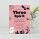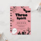 Halloween birthday invitation card for a girl including drawings of a ghost, spider, bat, and candles. The title is "Three Spirit."