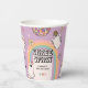 Retro Three Spirit Halloween 3rd Birthday Party Paper Cups- Let's get Groovy! Design features a colourful background with a boho rainbow. Cool retro illustrations decorate the simple template with adorable hippie ghosts, skull flowers, spooky disco ball and spooktacular candy.