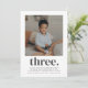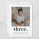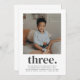 A modern 3rd Birthday invitation featuring your own photo and the word 'three.' underneath.