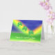Card with my design of three four-leaf clovers sliding down bright rainbows with text "Happy St. Patrick's Day!"