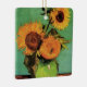 Three Sunflowers in a Vase by Vincent van Gogh is a vintage fine art post impressionism still life floral painting. A bouquet with three beautiful blooming sunflowers in a vase. Fresh cut summer flowers from the garden.