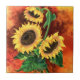 Three Sunflowers Painted Ceramic Tile