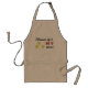 Cute, heavy duty apron with wide front pocket. Light to wear and easy slip on and off. Shorter length perfect for my 5 ft frame. I love it! Wording and print looks good with clear borders. Stitching is good, nicely finished.