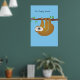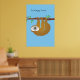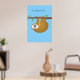 Three-Toed Sloth "Just Hanging Around" Blue Poster.