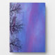 Silhouetted tree tops with a pink and blue sunset.