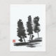 Three almost abstracted poplar trees grow in a brisk white sky. Great for art and nature lovers! Original brush art by Ren Adams.