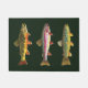 This item features three big and beautiful trout: the Brook Trout, salvelinus fontinalis; the Rainbow Trout, oncorhynchus mykiss; and, the Brown Trout, salmo trutta. The art is from three original water colour paintings by Mr. Trout Whiskers. If you love trout - either fishing for them, studying them or just looking at them, you'll love this item. Great for decorating home, office, cabin, lodge, business and anywhere trout is spoken. Makes a unique gift for fans of fly fishing and ichthyology any day of the year! These same three fish are available on hundreds of other items, too.