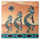 Brighten Your Home with this Unique "One of a Kind" Southwest Kokopelli Ceramic Tile! It Features Three Turquoise Southwest Kokopelli Playing the Flute and Dancing Under the Sun on a Desert Background...with a Bottom Border in Turquoise, Gold, Rust and White!