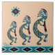 Brighten Your Home with this Unique "One of a Kind" Southwest Kokopelli Ceramic Tile! It Features Three Turquoise Southwest Kokopelli Playing the Flute and Dancing Under the Sun on a Tan Background...with a Bottom Border in Turquoise, Gold, Rust and White!