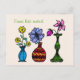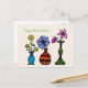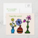 Moving announcement from her. Three vases of flowers, hand-drawn image on a new address postcard from her. Perfect announcement for a single gal with custom text on both sides. Personalise with a name on the front.