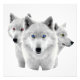 Three White arctic snow Wolves With glowing red, yellow and blue eyes transparent background Graphic art