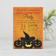 Three Wicked Pumpkins Halloween Party Invitation featuring Halloween Pumpkin illustration against an orange background.