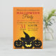 Three Wicked Pumpkins Halloween Party Invitation featuring Halloween Pumpkin illustration against an orange background. You can move/delete/change most of the design elements/fonts/background according to your choice/preferences. Do not forget to choose paper type when ordering your invitations!