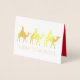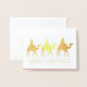 Three wise men custom Christmas cards with foil image on front. Choose gold or silver foil with "Merry Christmas" text (or change that to "Happy Holidays", "Seasons Greetings", etc. Three wise men riding on camels is the simple image. Inside is dark red with white text templates. Use the sample greeting or change it to your own and add a signature. This card comes in three sizes.