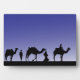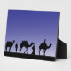 Illustration of the 3 wise men riding on their camels at night as they make their journey towards Bethlehem.