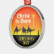 Three Wise Men Star of Bethlehem Religious Christmas ornament. This is a beautiful and simple yet elegant Christmas ornament that's perfect for Christmas trees in church offices or sanctuaries or your home. The three wise men as they cross the desert, following the Magi Star in the East, in search of the baby Jesus. For Advent and Christmas, the holiest time of the year. Celebrate the birth of the Christ child in Bethlehem. Ornament has "Merry Christmas" on the front and "Christ is Born" on the back. You'll love this religious Christmas holiday décor for your home or church. Makes a great gift to your priest, pastor, or minister at Christmas.