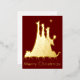 An elegant nativity Christmas card featuring the three Wisemen with their camels & the Star of Bethlehem: with a greeting that says, Merry Christmas. A festive red background with real gold foil design. You can personalise this design with a special message and your return address on the other side.