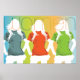 Three women standing wearing colourful tops. This design looks really effective on these Poster