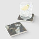 The coasters are gorgeous, a quality feel and heavy weight. They look like a precious archeological find. A rustic stone juxtaposed with a modern floral black and white print. I like the way the print goes slightly imperfect on the cut stone edges giving them a kind-of natural beauty.