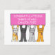 Four Cartoon cats hold up a large pink sign that says 'Congratulations Four Years Cancer Free'. The cats are wearing pink ribbons.