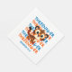 Threenager birthday party paper napkins to celebrate a little boy's 3rd birthday. Modern design with orange and blue colours for a kid's party.
