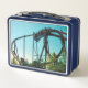 This is a standard metal lunchbox that appears to work just fine. We designed this box ourselves with an uploaded photo and custom text on the front and back. It looks absolutely beautiful except the front of the lunchbox is not centered like it shows in the photo. The print borders don't align with the inset flat part of the box where the preview photo online showed it perfectly centered in there. The back looks nice and centered though.
