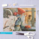Jenny Nystrom created the image of the tomten or mischievous spirits and gnomes who protected the Swedish farmstead and buildings. They also represented Father Christmas who delivered children’s presents on Christmas eve.This image depicts a gnome gazine through a Christmas window while leading a goat and sled with baby.