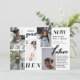 Modern, minimal graduation announcement to celebrate the grad and look back at their journey. Design features a trendy modern design with a five photo layout to display various photos of the graduate through the years to create a fun now and then design. Bold trendy text displaying the words "Then" "Now" & "Future" are displayed around the design. Customize with the Grad's name, school, and a section to display the grad's future plans. Design by Moodthology Papery