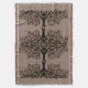 Tree with weeping branches/leaves. Image has been replicated and turned to give a kaleidoscope effect, resembling reflections. Background is tan/mauve in colour.