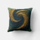 This throw cushion features an abstract image- Gold and blue swirls with mechanical cogs.