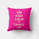 Based on the original Keep Calm and ... poster this cream and pink Keep Calm and Dance On Throw Pillow features a custom designed font that matches the original closely.