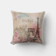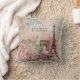 Vintage Parisian design featuring Paris, the Eiffel Tower, Arc De Triomphe, and flowers in a sweet pink and blue watercolor ephemera background. Customise and replace the wording "PARIS" with your favourite quote. Enhance your living space with this beautiful vintage pillow. Fits Parisian shabby chic Victorian home decor.