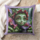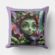 Periwinkle Throw Pillow With A Special Rare Plant With Big Eyes,A Part Of The Planty Tribe.