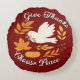 Set against a rich dark red background, the phrase “Give thanks, Choose peace” shines in crisp white lettering—creating a striking contrast that draws the eye and uplifts the spirit. The design elements blend seamlessly with the background, giving the pillow a modern, polished look.