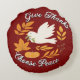 Celebrate the season with this heartfelt Round Throw pillow from 'The Peace Collection'. Featuring a graceful white dove in flight holding an olive branch, surrounded by autumn leaves, berries, and a cozy pumpkin, this design evokes warmth, gratitude, and serenity.