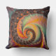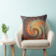 An abstract spiral design in shades of orange, green, and brown covers the front of this 20"x20" Throw Pillow.