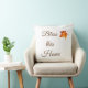 This throw pillow is shown in a White colour with a Bless This Home text print with a pretty fall leaf accent.