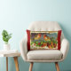 Christmas Red Robins from a vintage post card. Robins are sitting on twigs of green holly leaves and red berries. "Merry Christmas" is inscribed at the bottom. The background is a deep red. The photo is on both sides of the pillow.